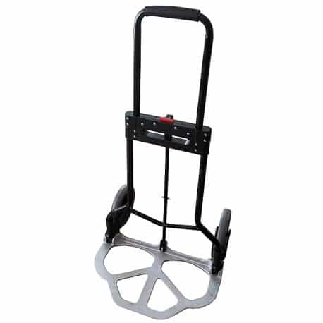 Carrello pieghevole con struttura in acciaio e pala in alluminio. Estremamente compatto. Portata 100 kg. Peso 3,9 kg. Misura chiuso 70x49x6 cm, misura aperto 100x49x45 cm.